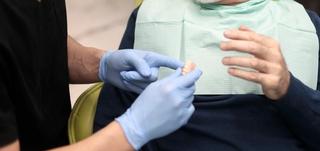 Dentures, also referred to as “false teeth”, are prosthetic replacements for missing teeth. False teeth are most commonly removable but can be fixed to dental implants or in the case of fixed partial dentures be glued to natural teeth in the form of a bridge.
